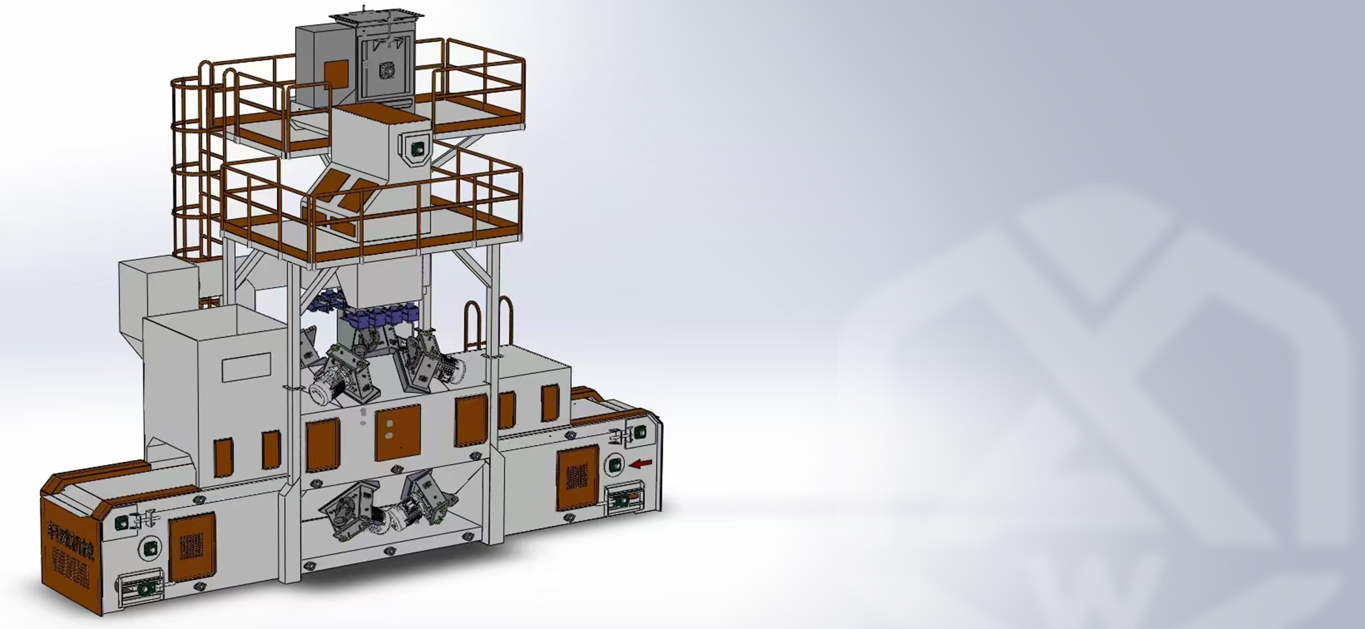 該款拋丸機(jī)采用自動(dòng)上下料結(jié)構(gòu),減輕工人勞動(dòng)強(qiáng)度,提高生產(chǎn)效率。